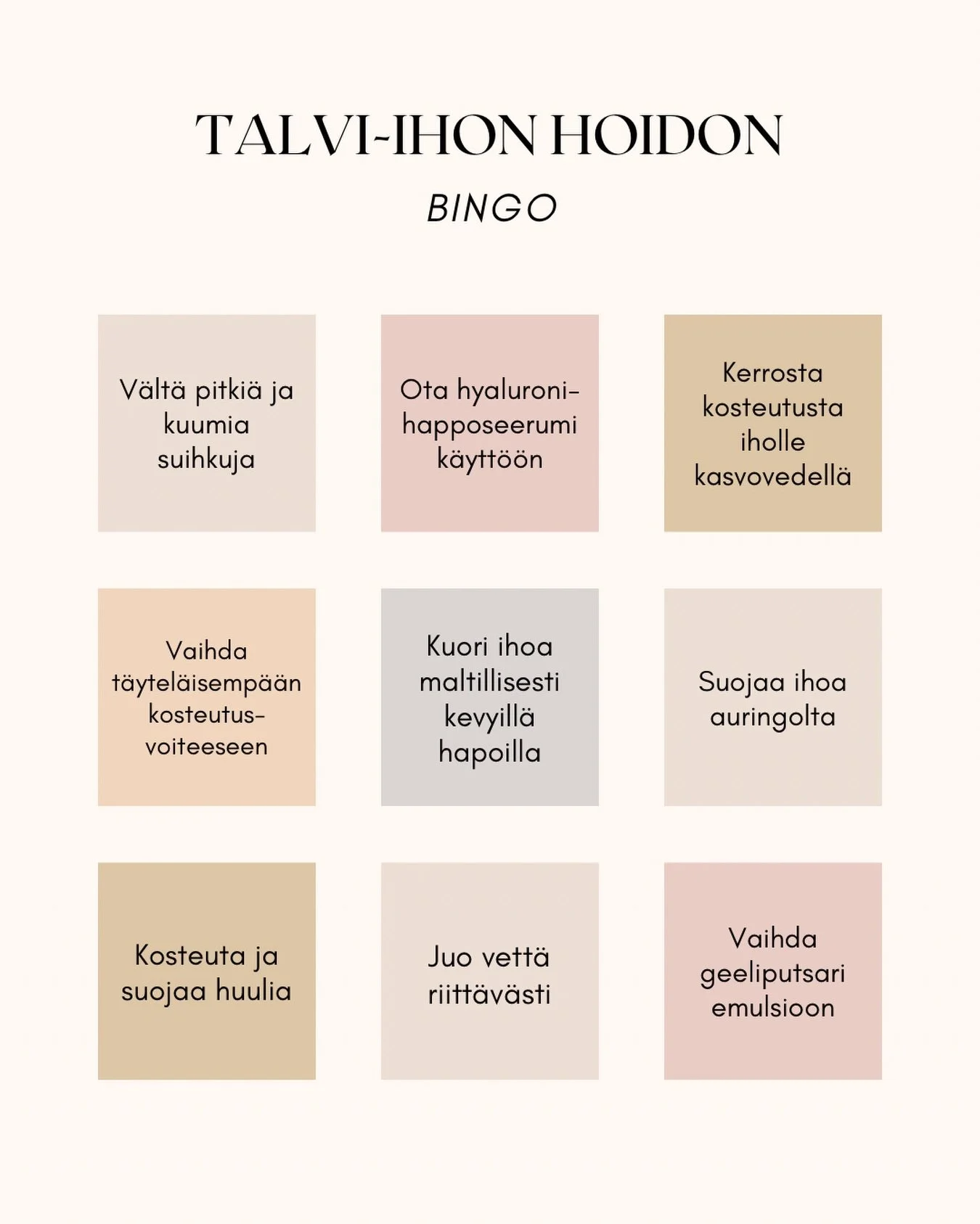“Aivan ihanan tunnelmallinen hoitola ja upea palvelu. Tällaista palvelua kun saisi kokea joka päivä. Kävin kasvohoidossa, ja sain ammattitaitoisen ja kokonaisvaltaisen hemmotteluelämyksen. Lämmin suositus”
